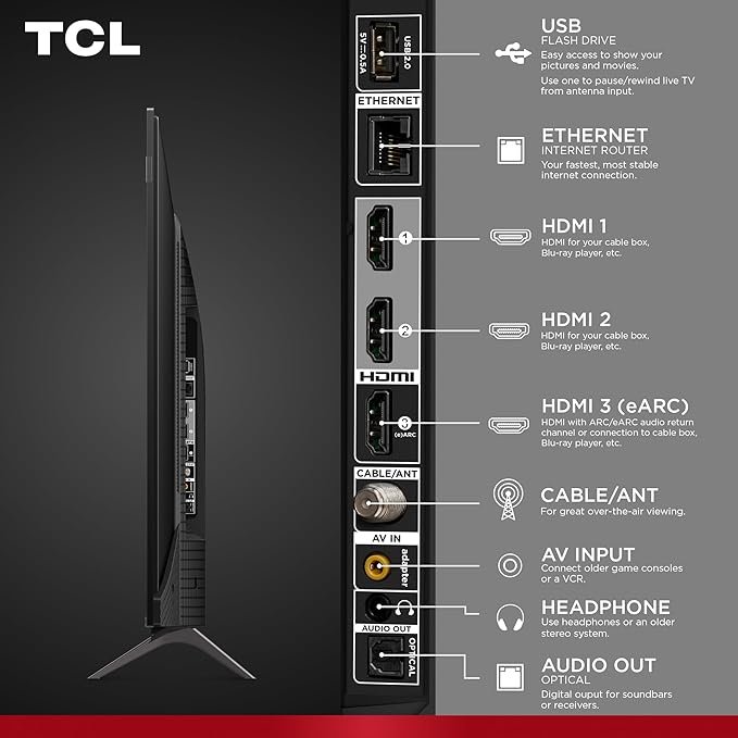 • TCL AIPQ Processor with Deep Learning AI – Powerful, advanced processor intelligently optimizes the color, contrast, and clarity for an unrivaled 4K HDR experience.
